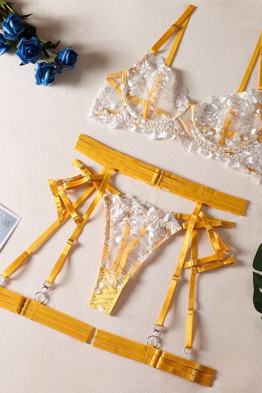 Our Floral Embroidery Transparent Lingerie Set is the perfect set for any special nigh.