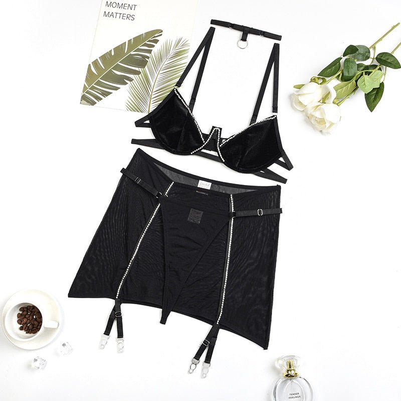 • Set Includes: Bra, Panties, Skirt
